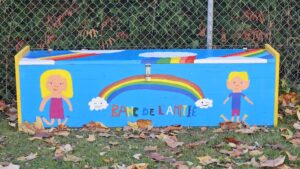 Des élèves, accompagnés de leur enseignant de travaux manuels, travaillent aussi depuis plusieurs mois à la réalisation du superbe « banc de l’amitié » qui fait aussi office de coffre à outil. Une serre, ainsi qu’un bac de récupération d’eau sont aussi en construction ! L’hiver arrive à grand pas et il faudra sûrement attendre le printemps avant de pouvoir admirer le plein potentiel du jardin, mais ce qui est sûr, c’est que les classes du collège de la Tour-Rouge se réjouissent déjà de goûter au fruit de leur travail!