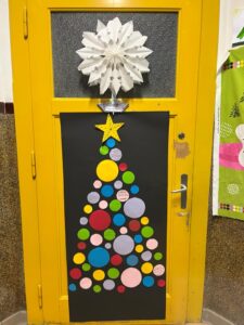 De plus, chaque classe a décoré sa porte d’entrée sur un même thème dans chaque collège ! On pouvait donc admirer des portes sapins au Collège Lac Sud, des portes cadeaux au Collège de la Tour Rouge etc…! On a surtout admiré la créativité de chacun, car aucune porte ne se ressemblait complètement!