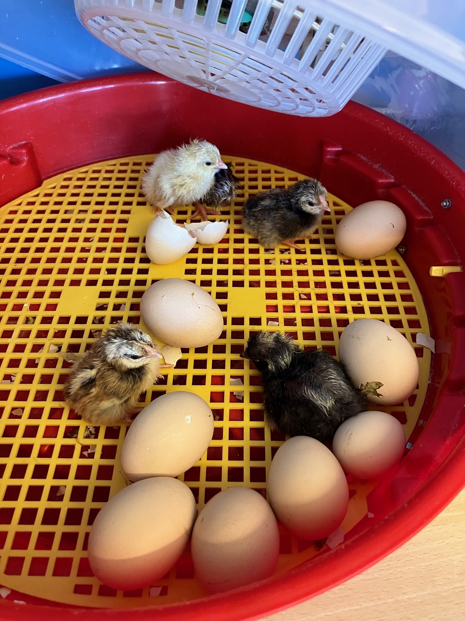 Puis, un matin, des craquements discrets ont annoncé l’arrivée tant attendue : les poussins sont nés, tout doux, tout mignons ! Les rires, les sourires émerveillés et les yeux pétillants ont rempli la classe. Les élèves étaient fous de joie… et les maîtresses tout autant !