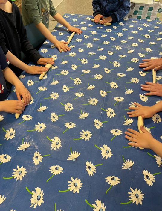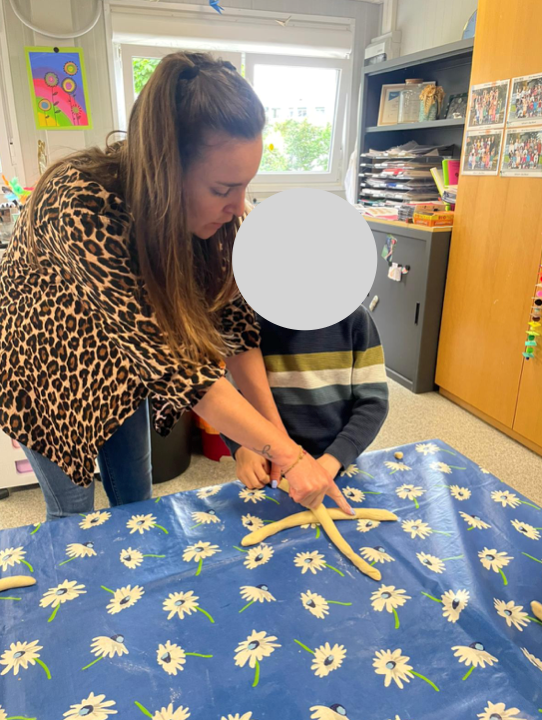 À l’occasion de la fête des Mères, deux classes enfantines ont préparé une délicieuse confiture à base de pommes et de courge de notre potager. Les élèves ont également confectionné 40 tresses, cuites dans un véritable four de boulanger.